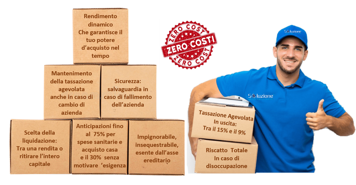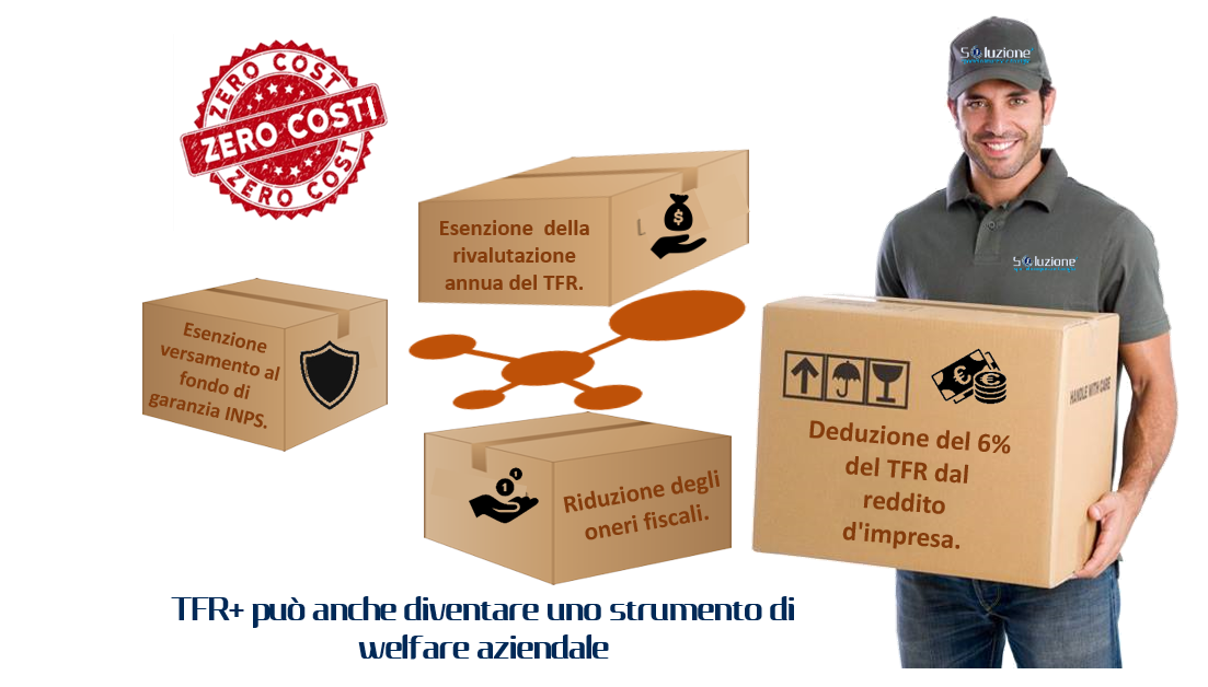 È la Soluzione pensata per l'imprenditore che vuol pianificare correttamente una futura uscita di denaro che se non gestita nel modo giusto nel corso del tempo potrà appesantire le dinamiche finanziarie con alto rischio della vita dell'azienda. Grazie a TFR+ potrete disporre di importanti vantaggi con notevole risparmio